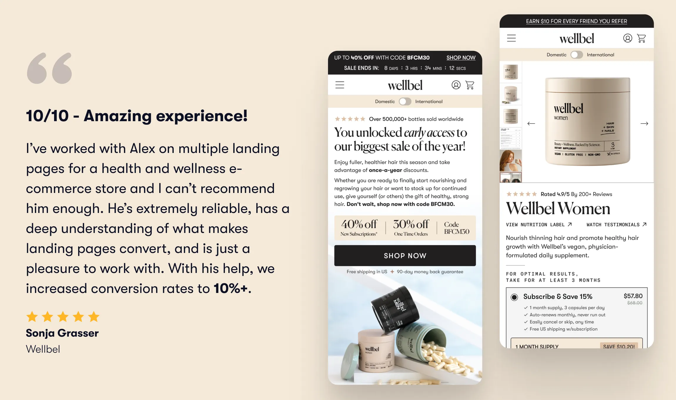 “With Alex’s help, we increased conversion rates to 10%+."